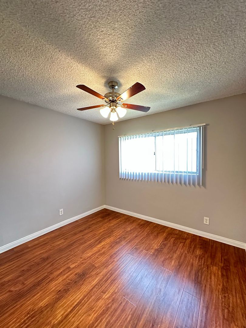 We are proudly offering for rent this 2 bedroom 1 bath apartment in the city of Bellflower. The apartment is approximately 850 square feet with two-tone paint, vinyl plank flooring, kitchen quartz countertops, kitchen & bathroom tile flooring, a gorgeous tile shower wall, ceiling fans, blinds, stove, refrigerator, oven and wall a/c. The apartment also has 2 parking spaces and a laundry room onsite. The building is located next to a beautiful park and near the 91, 105, 605 and 710 freeways. The owner pays for the water/trash bill. Hurry this apartment won't last long! This apartment requires renters insurance.