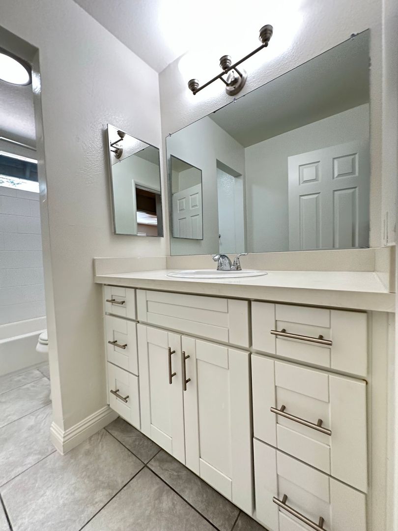 We are proudly offering for rent this spacious recently remodeled 2 bedroom 2 bath apartment in the City of Monrovia. The apartment is approximately 1000 square feet with vinyl plank & tile flooring throughout, kitchen & bathroom quartz countertops, beautiful kitchen and bathroom cabinets, stainless steel stove, refrigerator, central heating & air conditioning, mirrored closet doors, 2 car garage, stunning shower tile walls, blinds, an onsite laundry room, and ceiling fans. Hurry! This apartment wont last. Owner pays for water & trash. The apartment does require renters insurance.