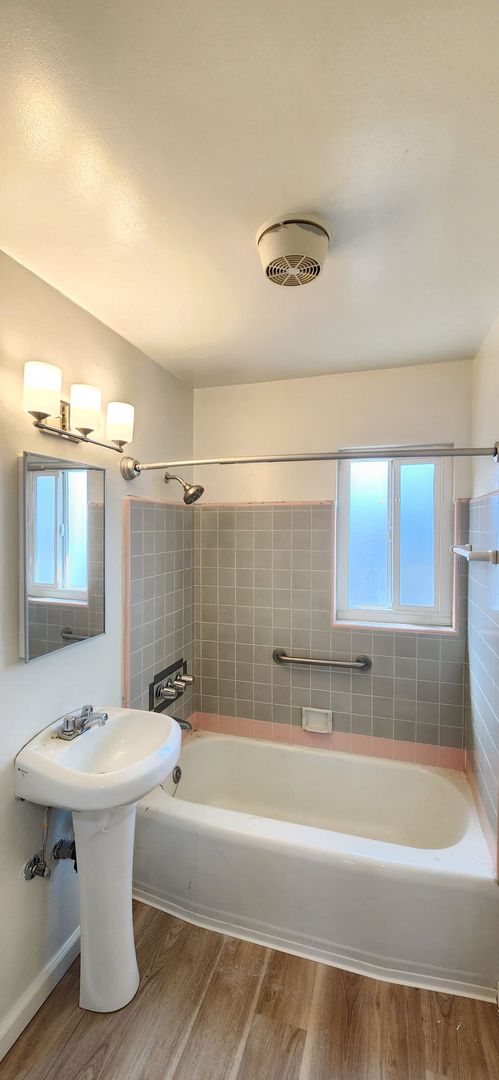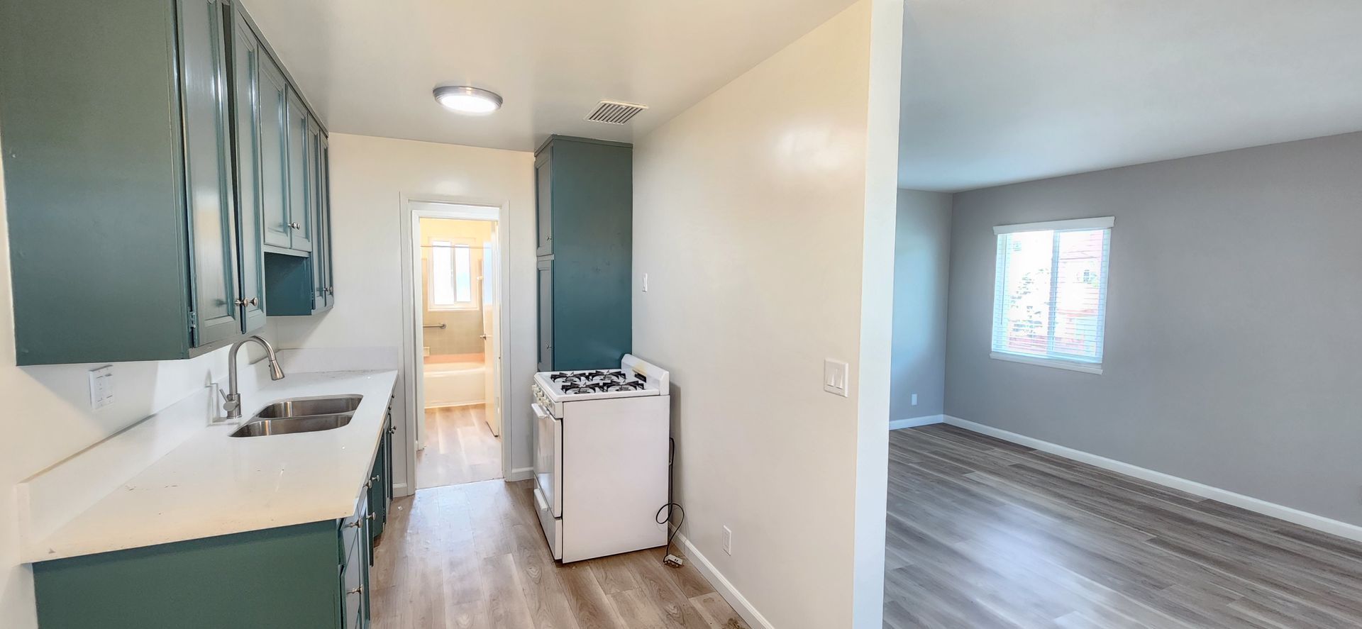 We are proudly offering for rent this gorgeous 1 bedroom 1 bath apartment in the city of Long Beach. The apartment is approximately 700 square feet with vinyl plank flooring, two-tone paint, quartz countertops, stove, refrigerator, bathroom tile flooring, shower tile wall, blinds, ceiling fans, and vinyl windows. The owner pays for the water bill. The apartment has a laundry room onsite. Hurry this is a nice apartment that won't last long. This apartment requires renters insurance.